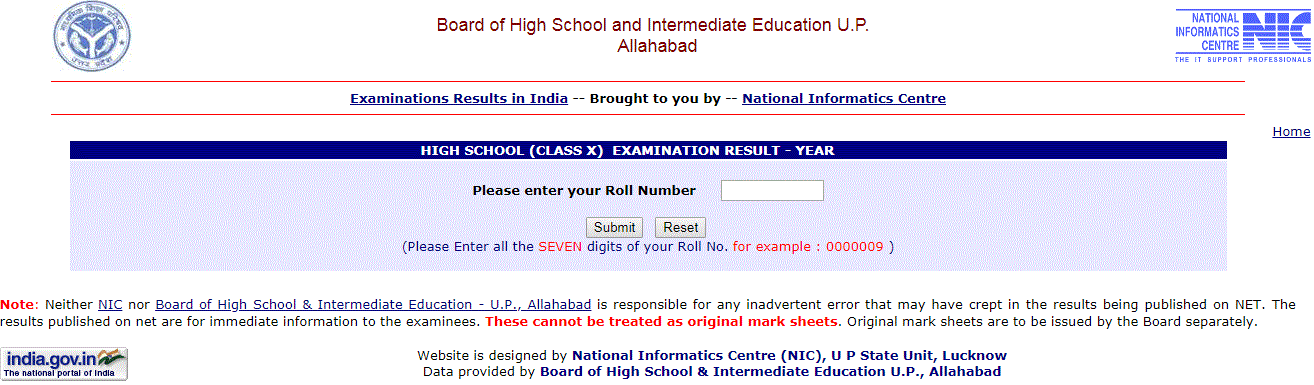 Official web site | www.schools9.com or http://upresults.nic.in/ |